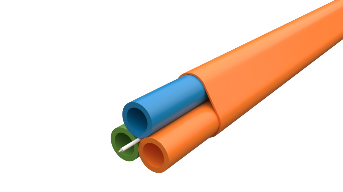 Tykkvegget direkteforlagt bundlet fiberrør med søkertråd/lyttetråd under ytterkappen, slik at man kan dokumentere og gjenfinne kabler og rør.