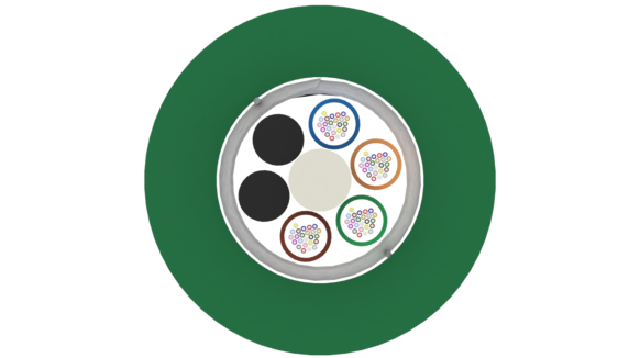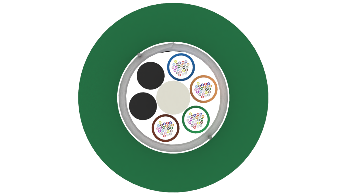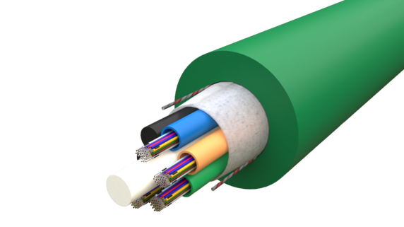 Fiberoptisk kombikabel for innendørs- og utendørsbruk. Kabelen inneholder 24-144F med løs kledning. Fibrene ligger beskyttet i tuber. Grønn halogenfri og brannhemmende LSZH kappe. Langsgående vanntett, UVbestandig og metallfri.