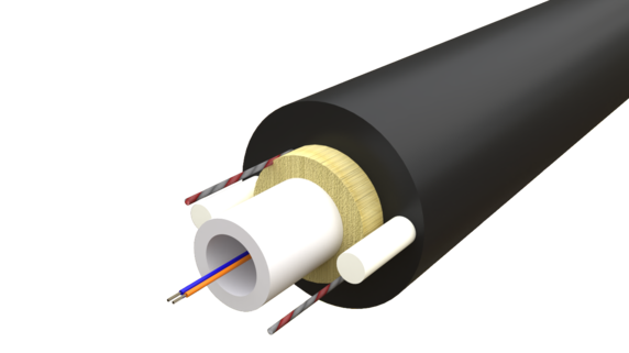 Kabelen er forsterket med aramidgarn og to strekkavlastere av FRP som er innstøpt i ytterkappen.