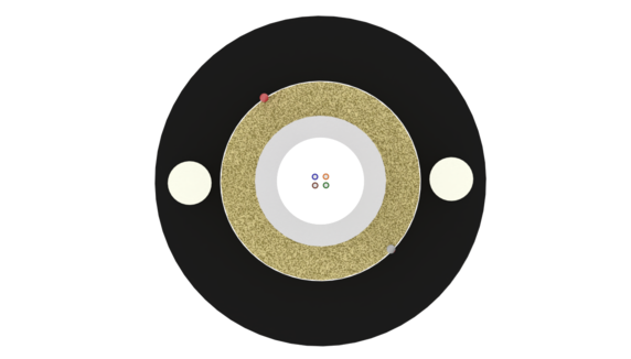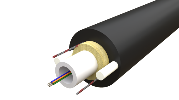 Kabelen inneholder 250µm primærbeskyttet fiber som ligger i et senterrør av termoplast (PBT) med optofyllmiddel. To strekkavlastere av glassfiberarmert plast (FRP) er innstøpt i ytterkappen