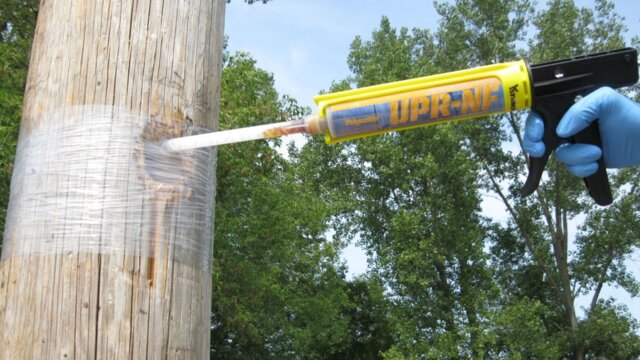 Reparasjonsmassen fra Polywater er spesielt utviklet for ĂĄ utvide og fylle hulrom, samtidig som den beskytter stolpen.