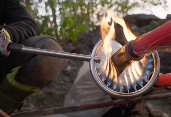 Gassbrennerhodet fordeler varmen 360° rundt krympeslangen. Resultatet er raskere installasjon, jevn krymping og et tryggere sluttresultat - hver eneste gang.