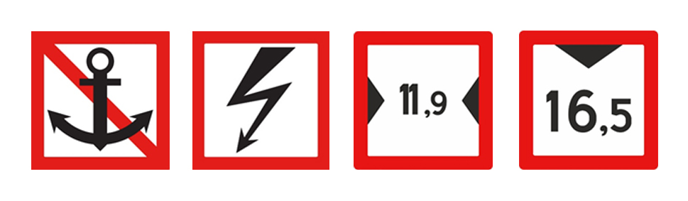 Farvannsskilt LS0: Leseavstand: Kanaler og trange farvann