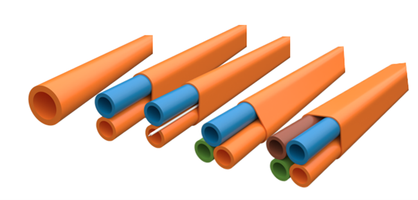 Det indre silikonsjiktet i rørene sørger for at friksjonen mellom kabel og rør minimeres, og du får en mer skånsom kabelblåsing.