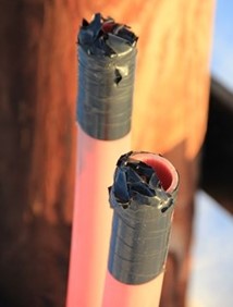 Eksempel på feilinstallasjon. Her er det brukt tape i stedet for endeforsegling. Tapen forvitrer, og du får vanninntrengning i rørene.