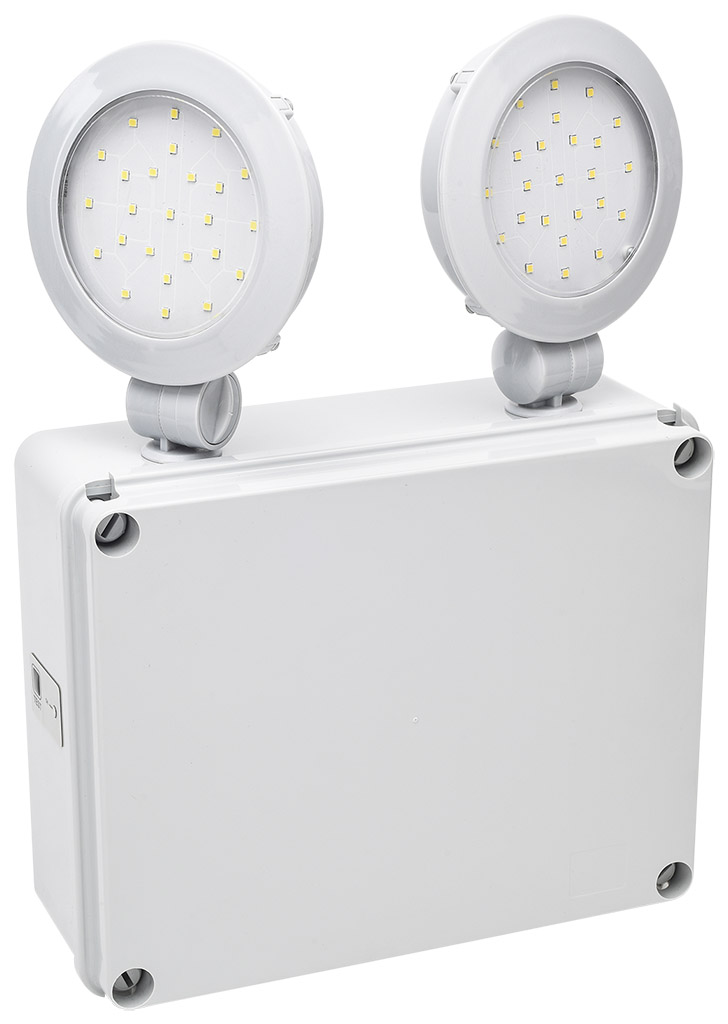 EluLED er et anti-panikklys med 2 stk. LED-lyskilder på til sammen 20 watt. Lyktene kan justeres i ønsket retning for å belyse spesifikke områder. Armaturen har 3 timers batteri-backup.