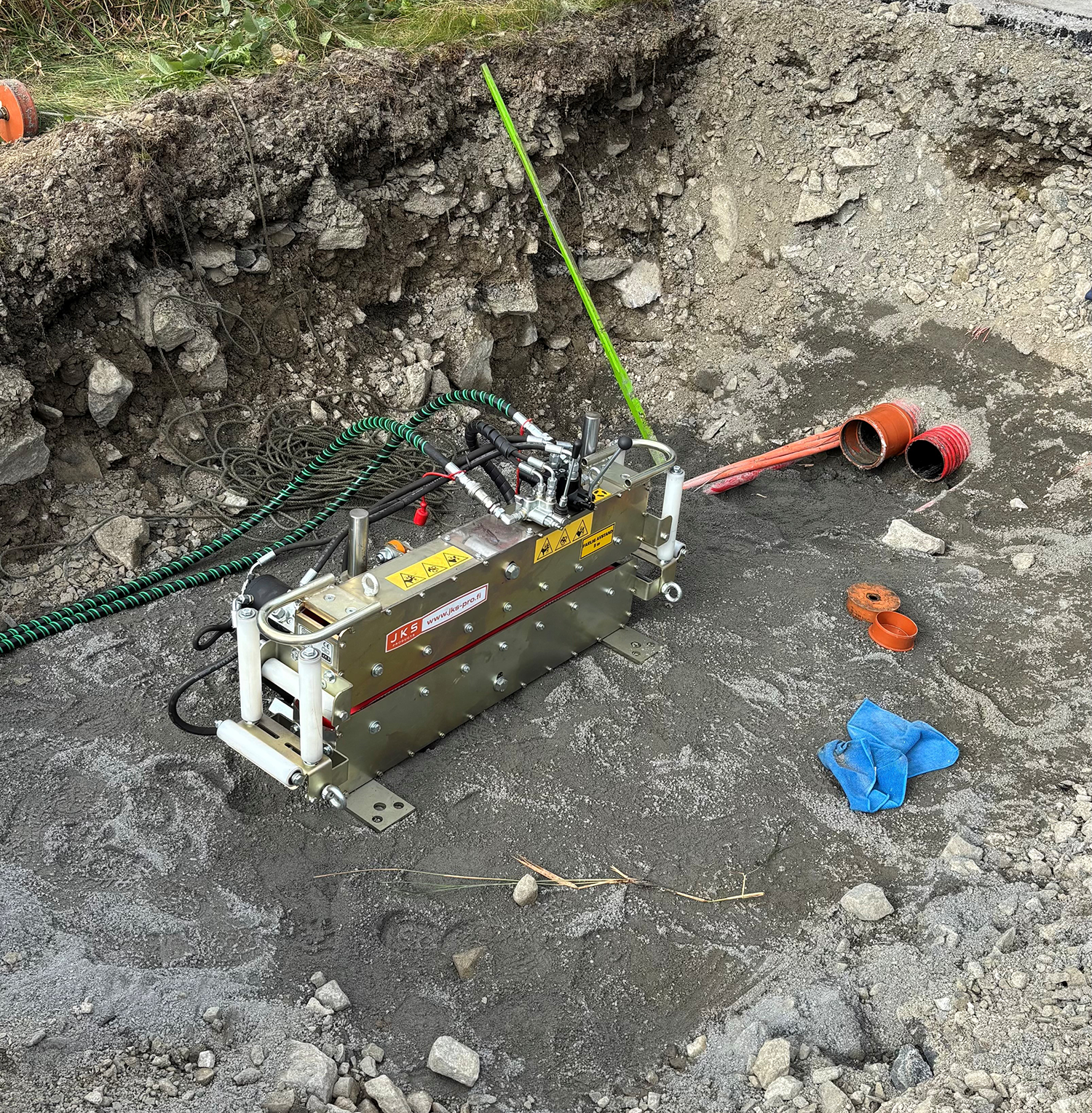 Med hjelp fra vår kabelskyver SD125, kombinert med vår JKS-kabelvogn og Polywater-smøring, ble prosjektet gjennomført effektivt, trygt og langt rimeligere enn tradisjonell graving.