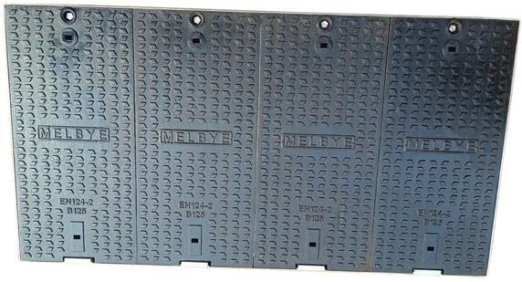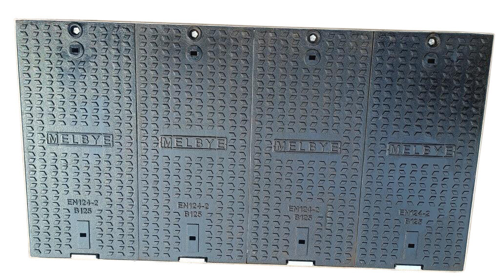 B125 brunnslock till UC 1500x750, 4 delat brunnslock i gjutjärn låsbart med pentahead bult, integrerad flytram på 70mm.