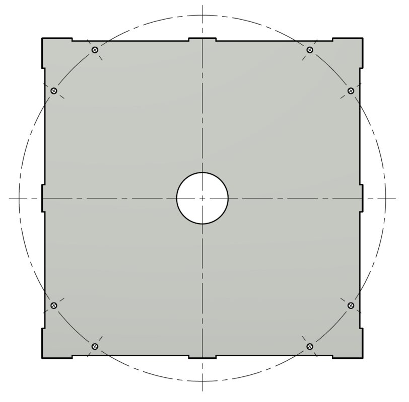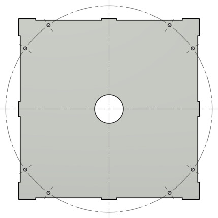 Adapterplate til E-fundament 600x600mm. Uten hullbilde senterhull 110Ø