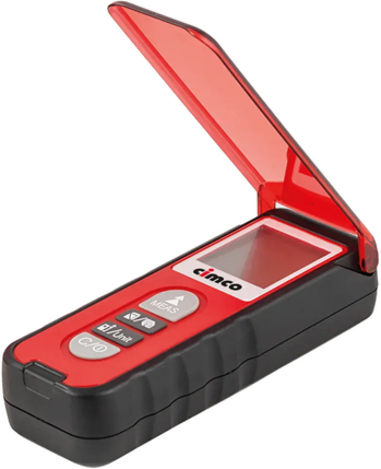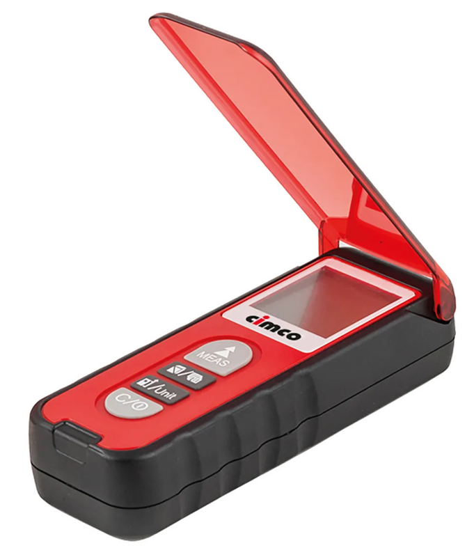 Støtter måling av avstand, areal, volum og indirekte måling via Pythagoras‑funksjon. Dynamisk (kontinuerlig) måling. To referansepunkter og fem valgbare måleenheter. Lagrer de siste 20 måleresultatene.