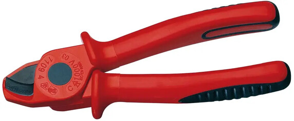 Kabelkutter godkjent for 1000 V, laget av slagfast, glassfiberforsterket plast med 2‑komponents håndtak.