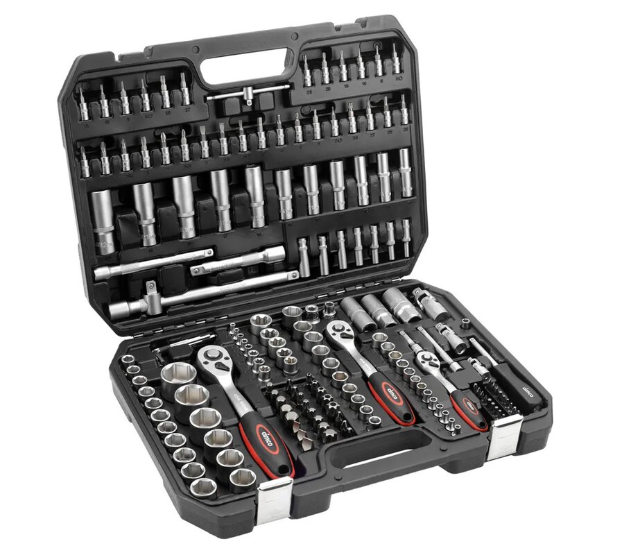 Skrallesett 171 deler, laget av krom‑vanadiumstål, i solid plastboks