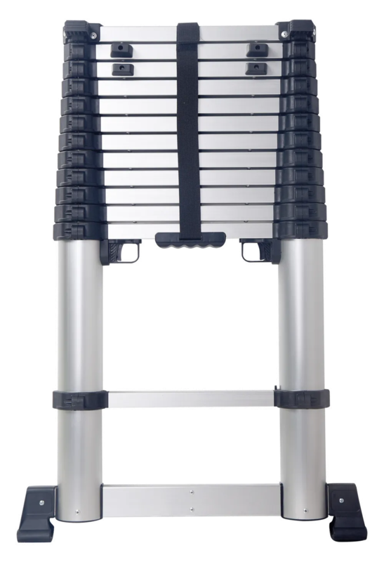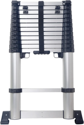 Aluminium teleskopstige XC‑380 PRO 2, individuelt justerbar opptil 3,80 m høyde. Maksimal arbeidshøyde 4,80 m.