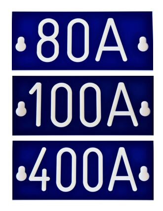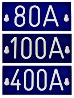 Vårt merkesystem passer til samtlige iso-sikringsbrytere på markedet. Disse skiltene kan også monteres direkte på stolpen.