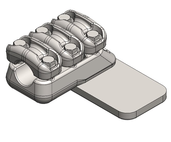Elementene bygges sammen til ferdige klemmer på al-skinner, tykkelse 15 mm.