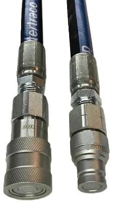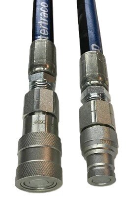 10 meter hydraulikkslanger med hurtigkobling i begge ender.