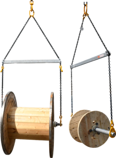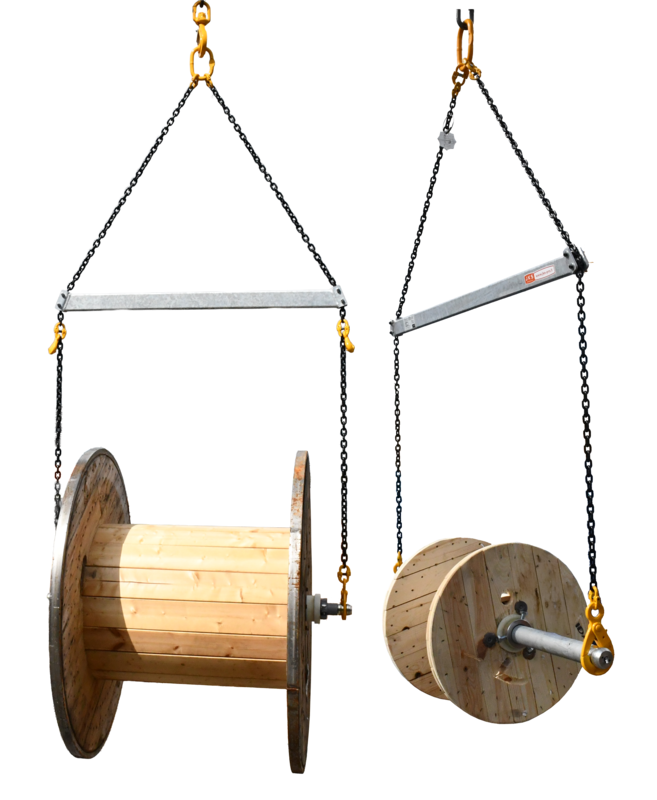 Melbye leverer komplett løfteåk fra JKS. Åket leveres med reduksjonskroker slik at man kan redusere kjettingens lengde ved løfting av mindre tromler.