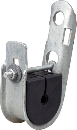 For luftløsning ADSS Type oppheng Mellomfeste kile For kabeldiameter 15-20mm Klemhus materiale Galvanisert stål Klembakke materiale Neopren Maks spennlengde 70 m Max Ø bolt/krok 16 mm - Andre varianter