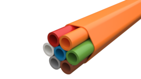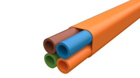 Bundlede tykkveggede rør av HDPE og ytterkappe av MDPE. Rørene er av lavfriksjonstype med et indre silikonsjikt spesielt utviklet for å minimere friksjonen mot kabelen. Mekaniske tester i henhold til IEC 60794-1-2. Forlegning: Direkte nedgravd