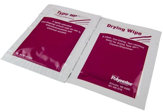 Renseservietter for rengjøring av fiber. En tørr og en våt serviett.