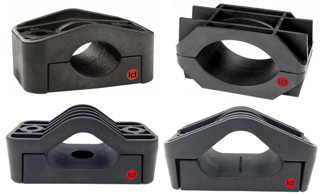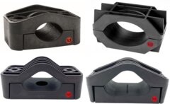 Klamrene er brede og får dermed et lavt flatetrykk (trykk pr. mm2) mot kabelkappen. De er støpt i glassfiberarmert Polyamid som særlig kjennetegnes ved sin høye styrke, motstand mot aldring og god varmebestandighet.