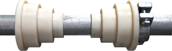 - Trommelaksling Ødia 60mm komplett med låsekrager og koner i nylon for hull-dia 77,107,133mm